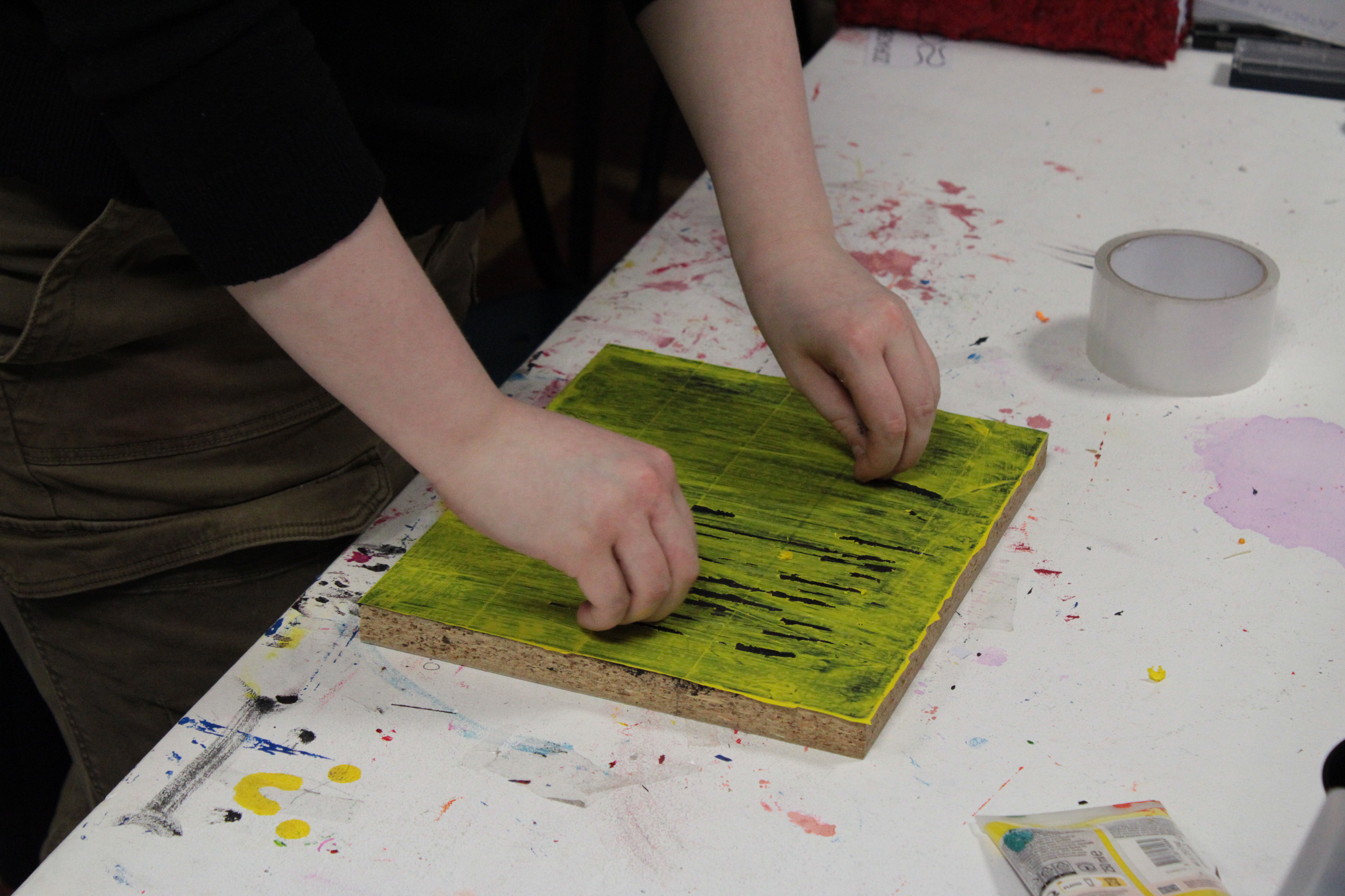 From research on the theme of self-harm, a visual exploration of lines, mediums, and tape was born. I'm interested in what they can represent, evoke, and evoke when combined with certain colors or other lines to form a grid.