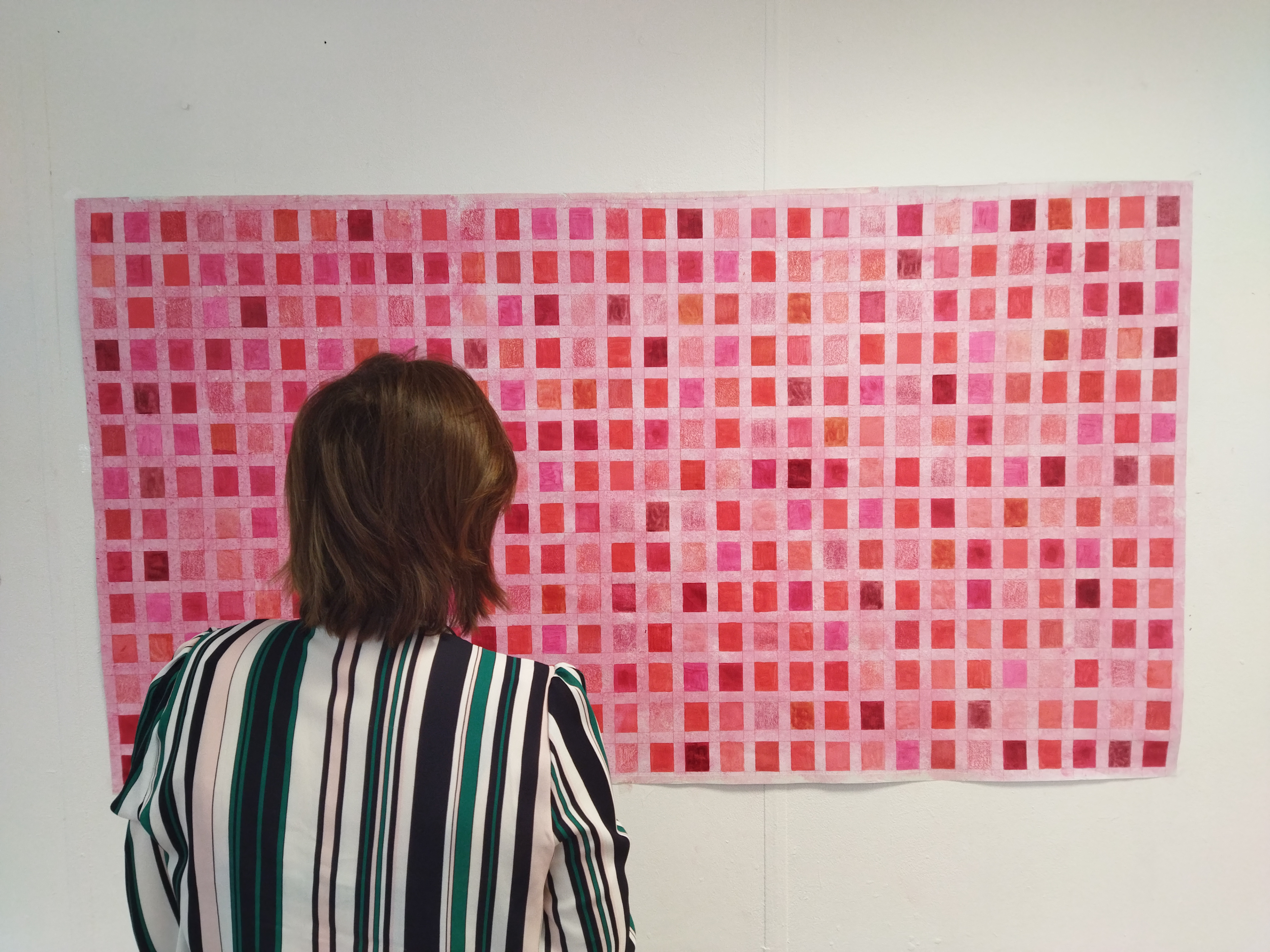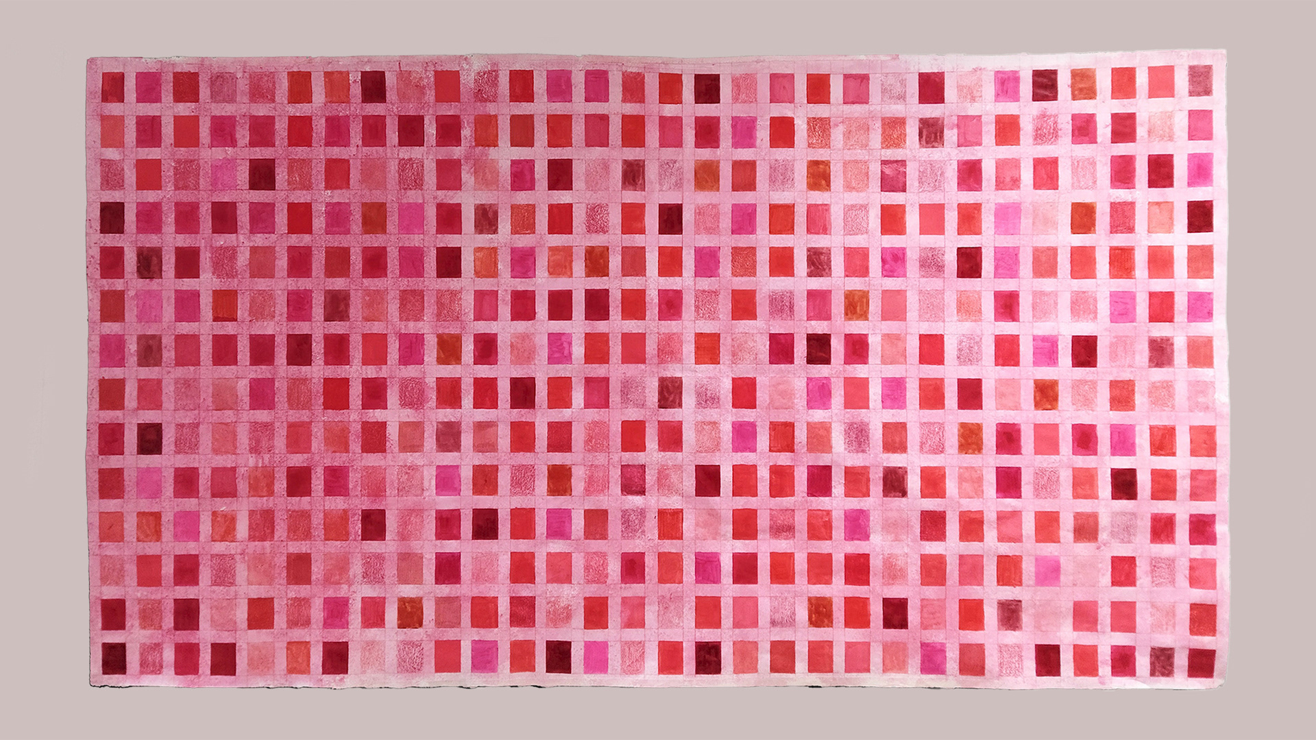 Through different shades all labeled as "red", Champ chromatique is a painting questioning the definition and characterization of this color.