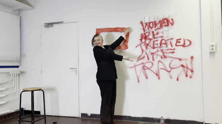 It is an aggressive confrontation between women and patriarchal society.
