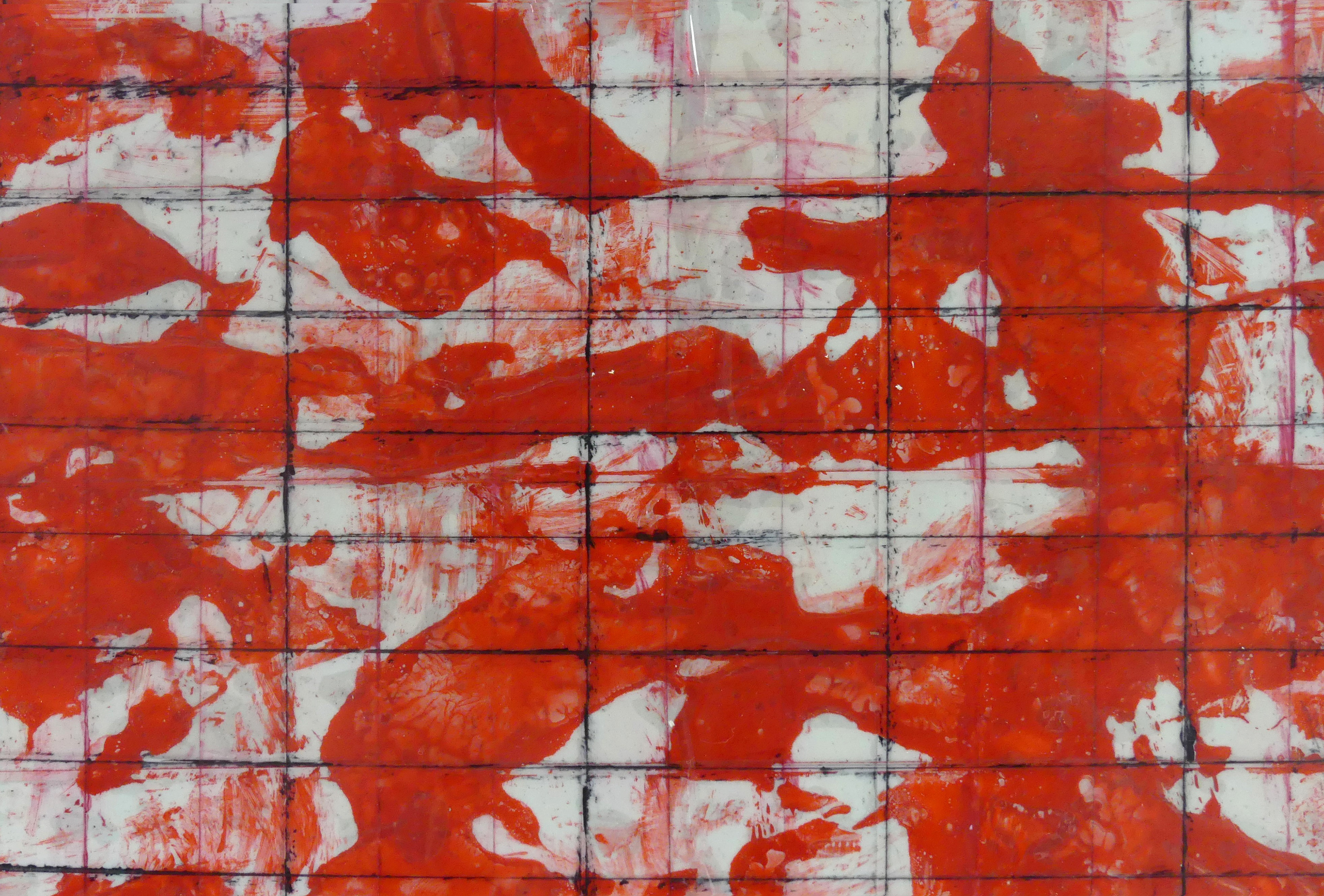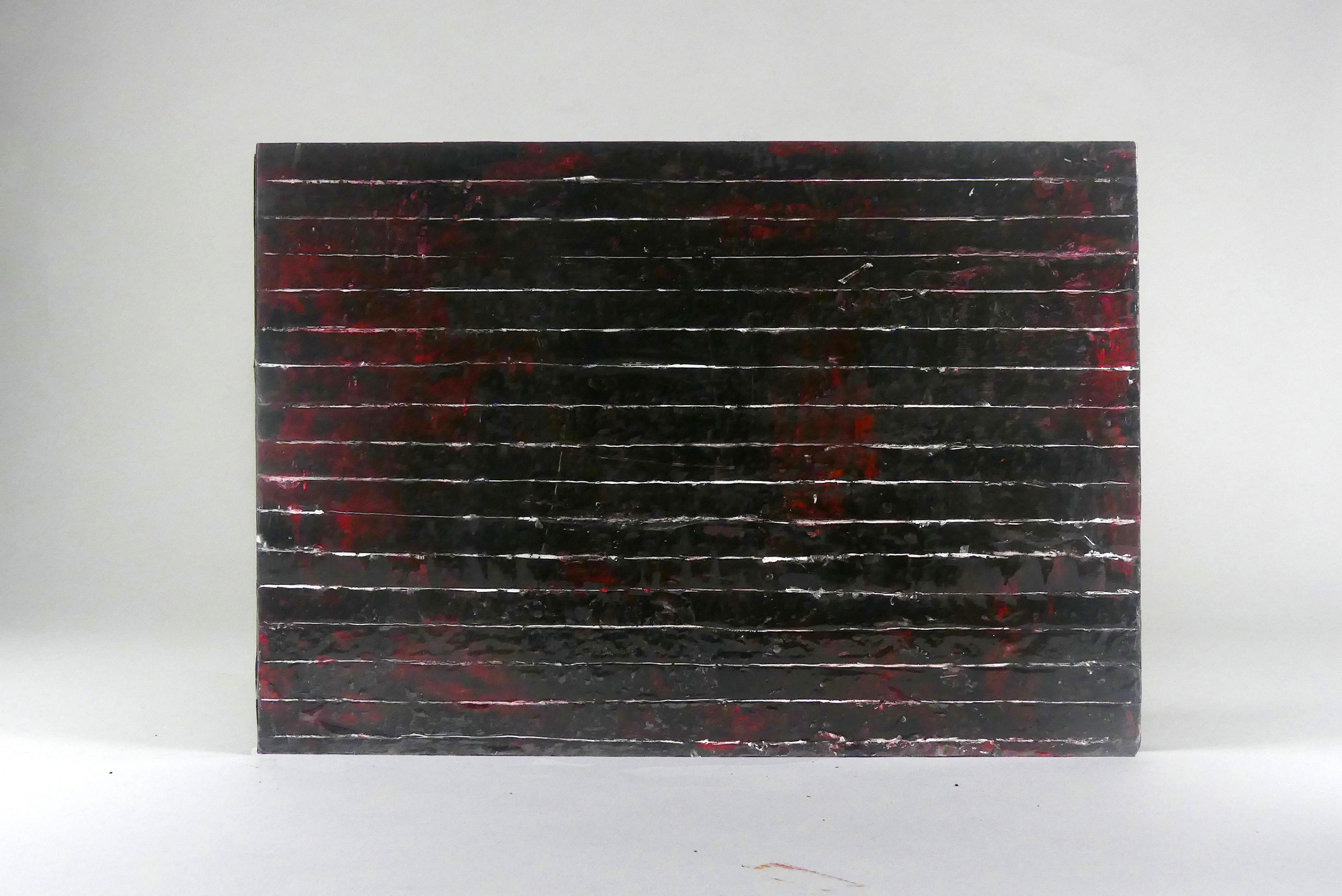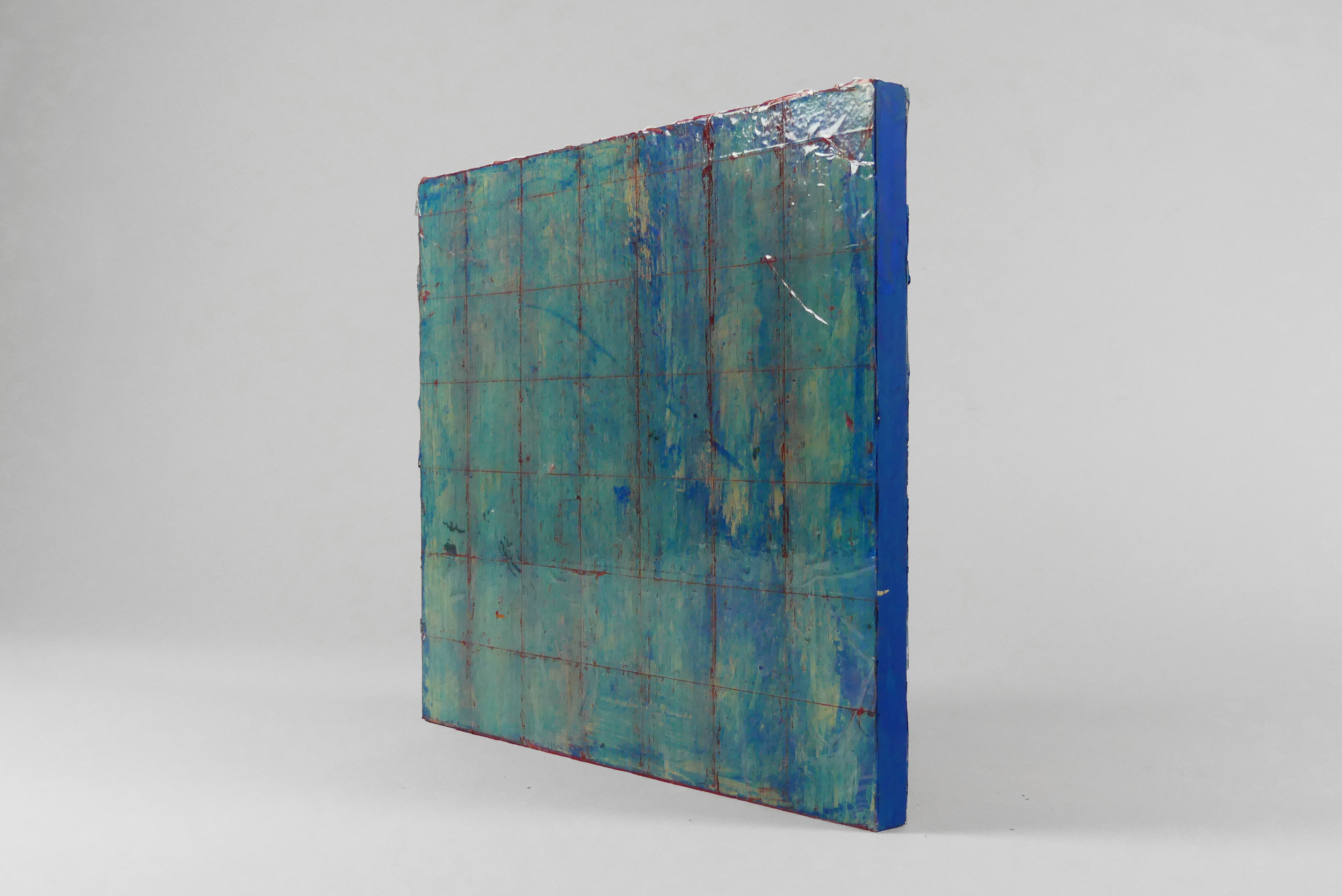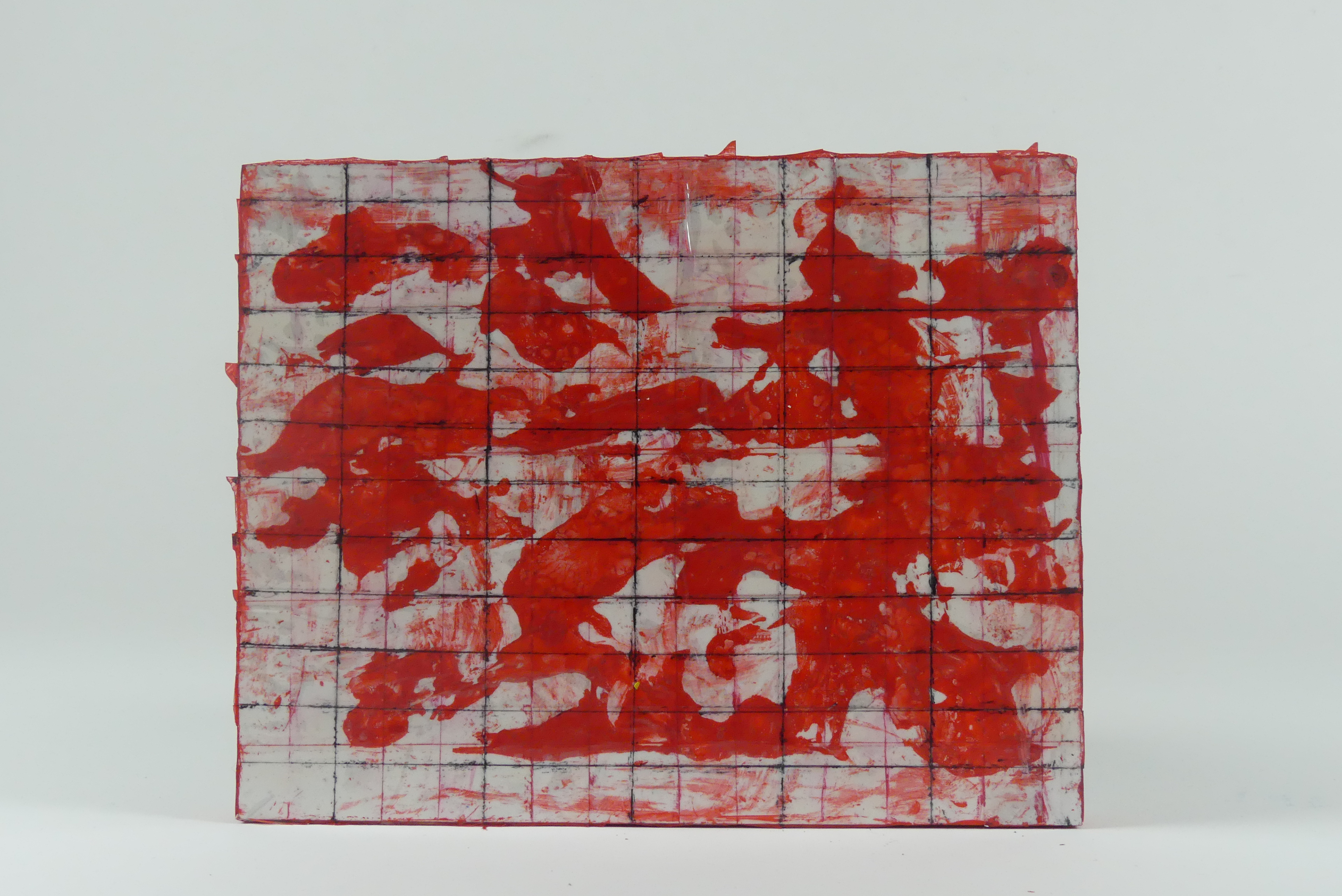 Ces tableaux-sculptures, présentés debout avec leur double face, présente un quadrillage créé par la friction entre les bords du scotch et le posca. A travers eux, j'explore un côté sensible de la géométrie en sortant de la froideur du trait mathématique pour aller vers l'importance du geste et de la trace humaine.