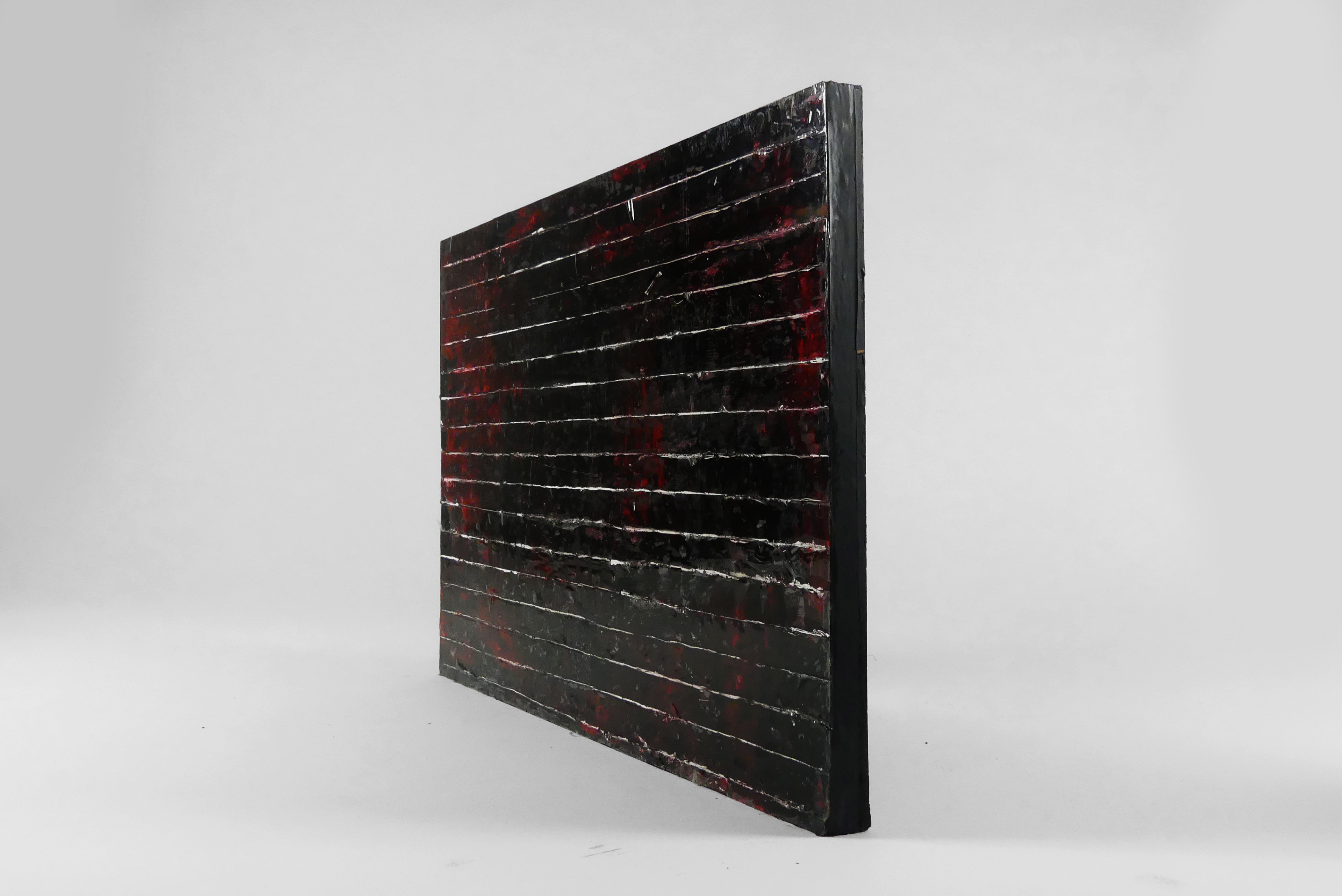 These tableaux-sculptures (sculpture-paintings), presented upright with their double-sided surfaces, feature a grid created by friction between the edges of the tape and the Posca pen. Through them, I explore a sensitive side of geometry, moving beyond the coldness of mathematical lines to the importance of gesture and the human trace.