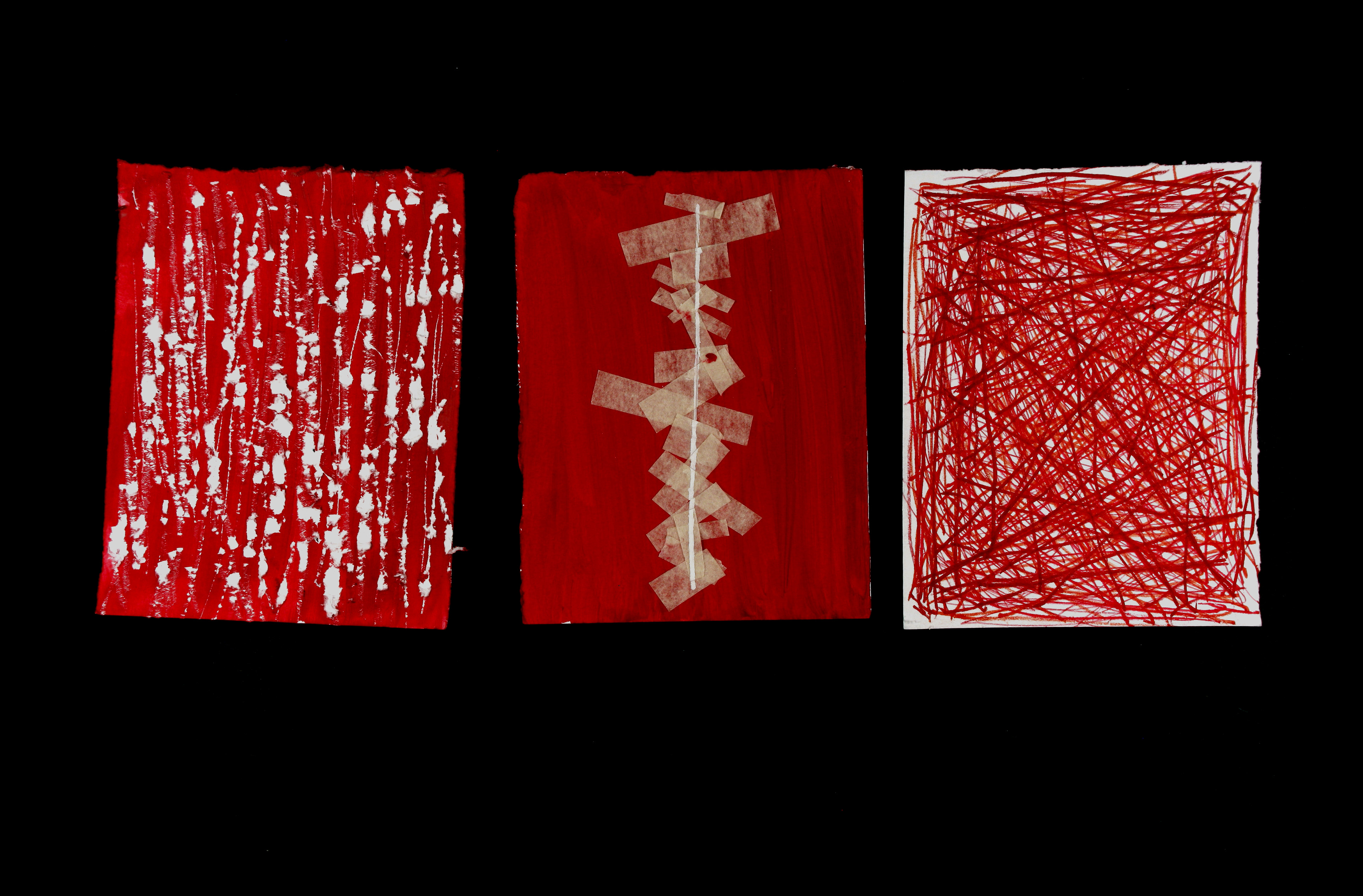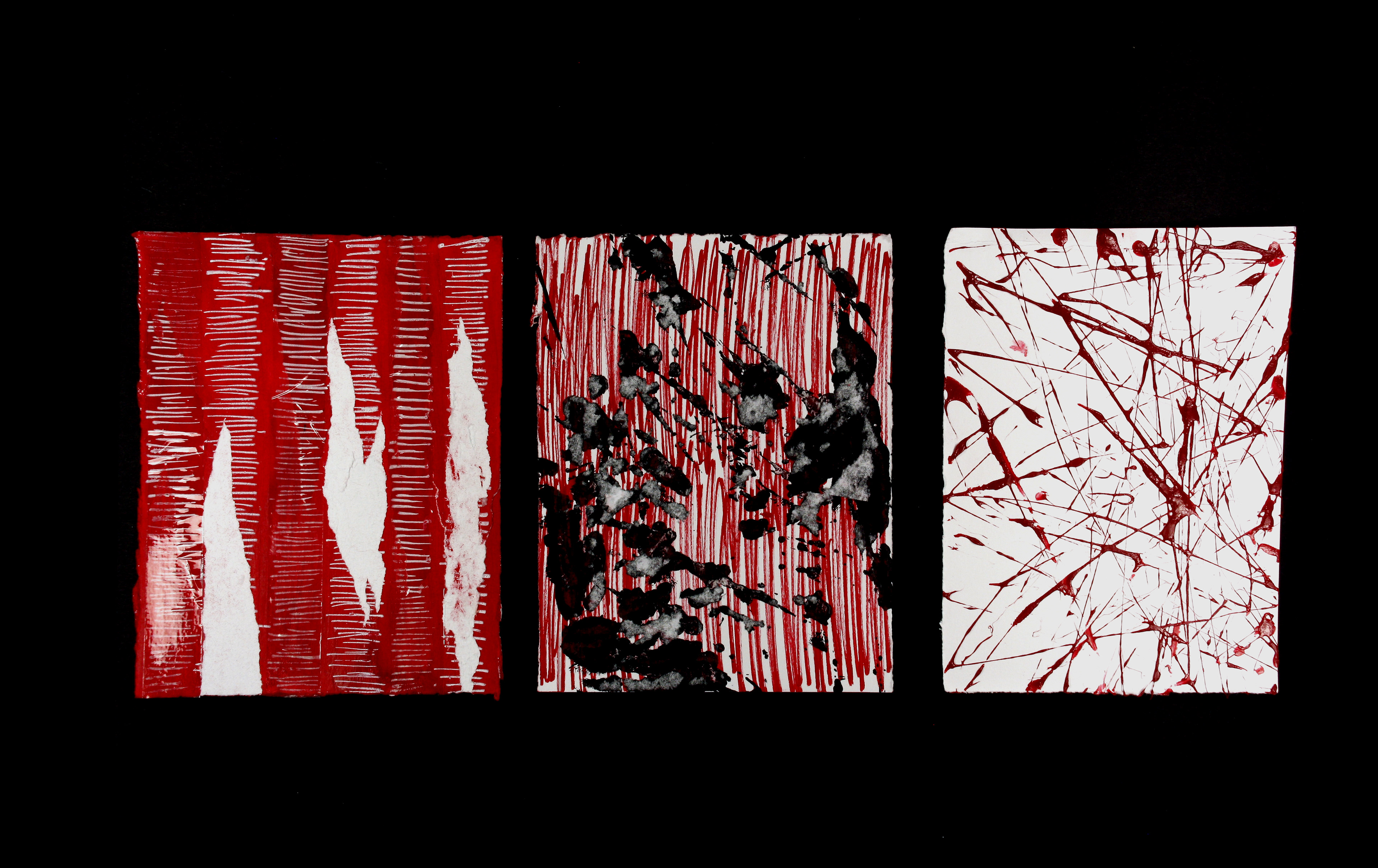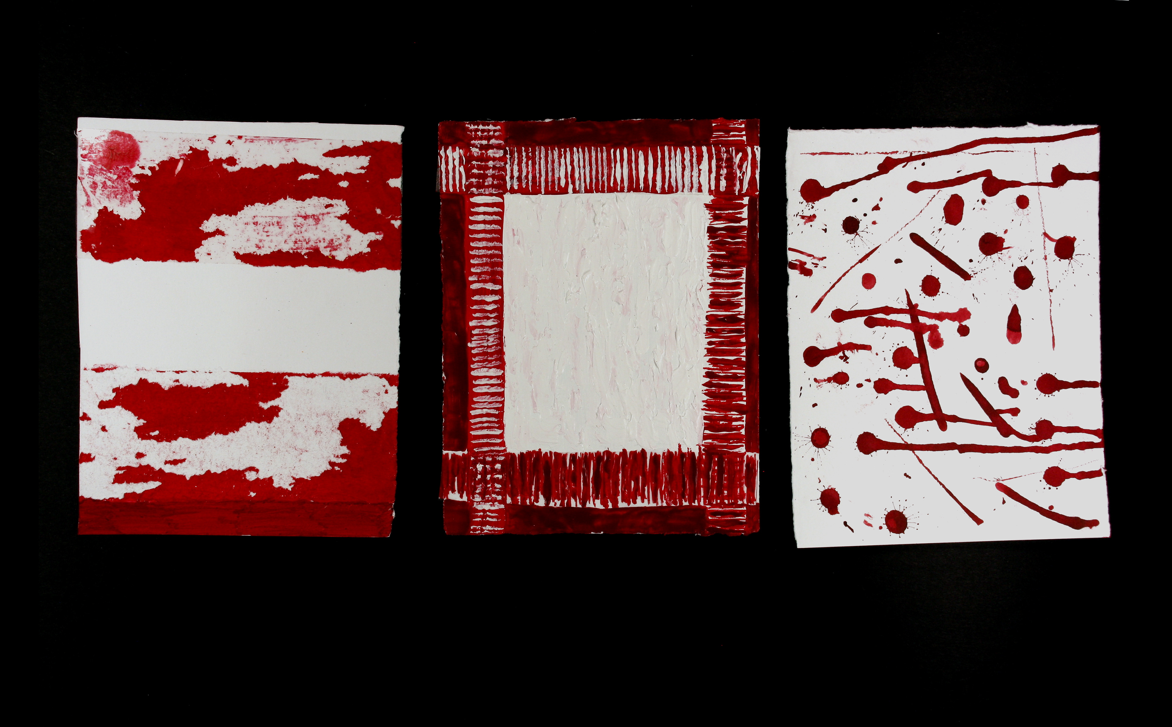 J’ai travaillé sur la déchirure, en répertoriant et testant les moyens d’agresser le papier pour montrer la douleur (ciseaux, couteau, scotch, cutter...), mais j'ai aussi travaillé sur la guérison avec l'utilisation du matériel médical.