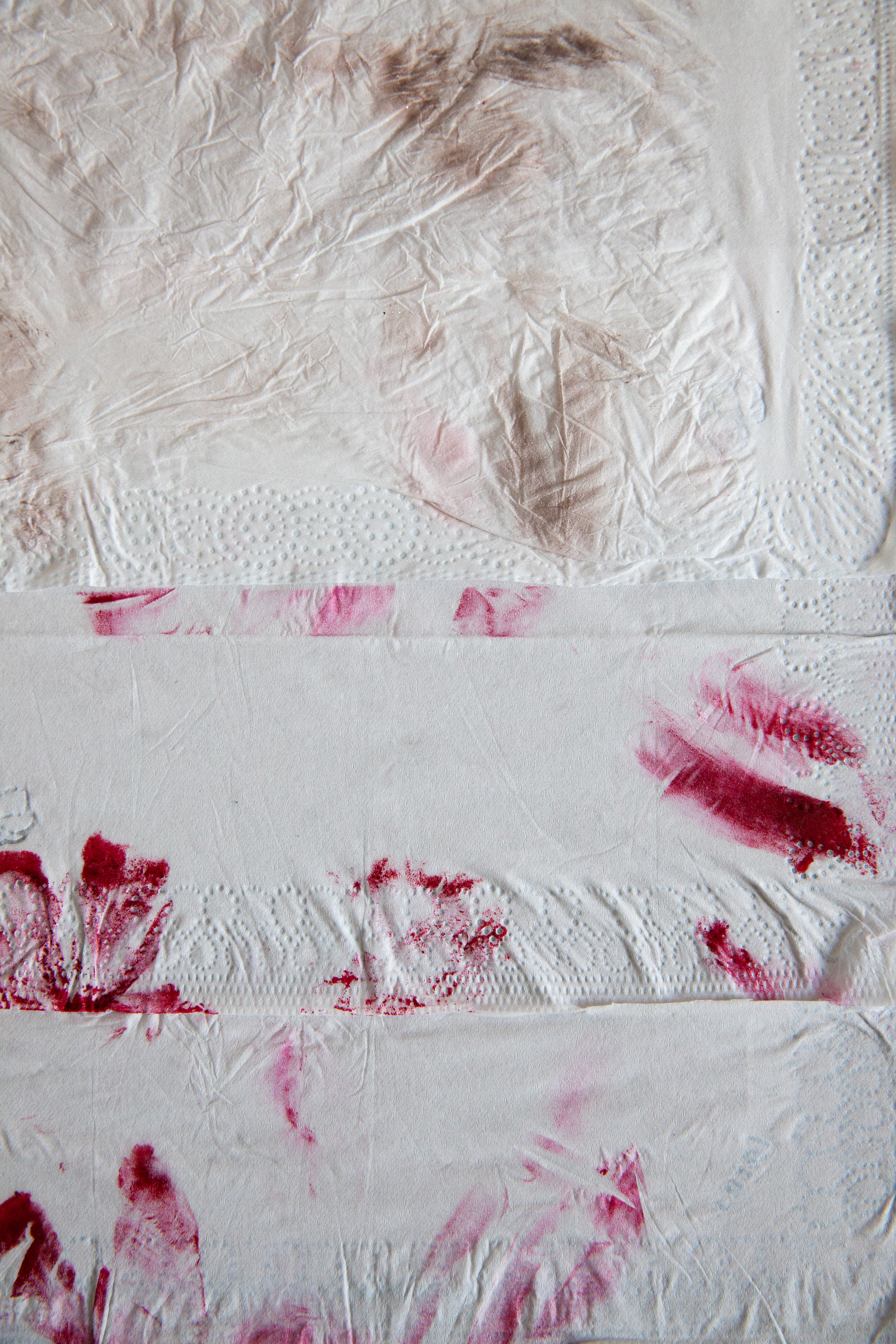 The only photo I liked to represent myself was the one where I closed my eyes. The back of the pastel shows a collage of the tissues I used to remove my makeup.